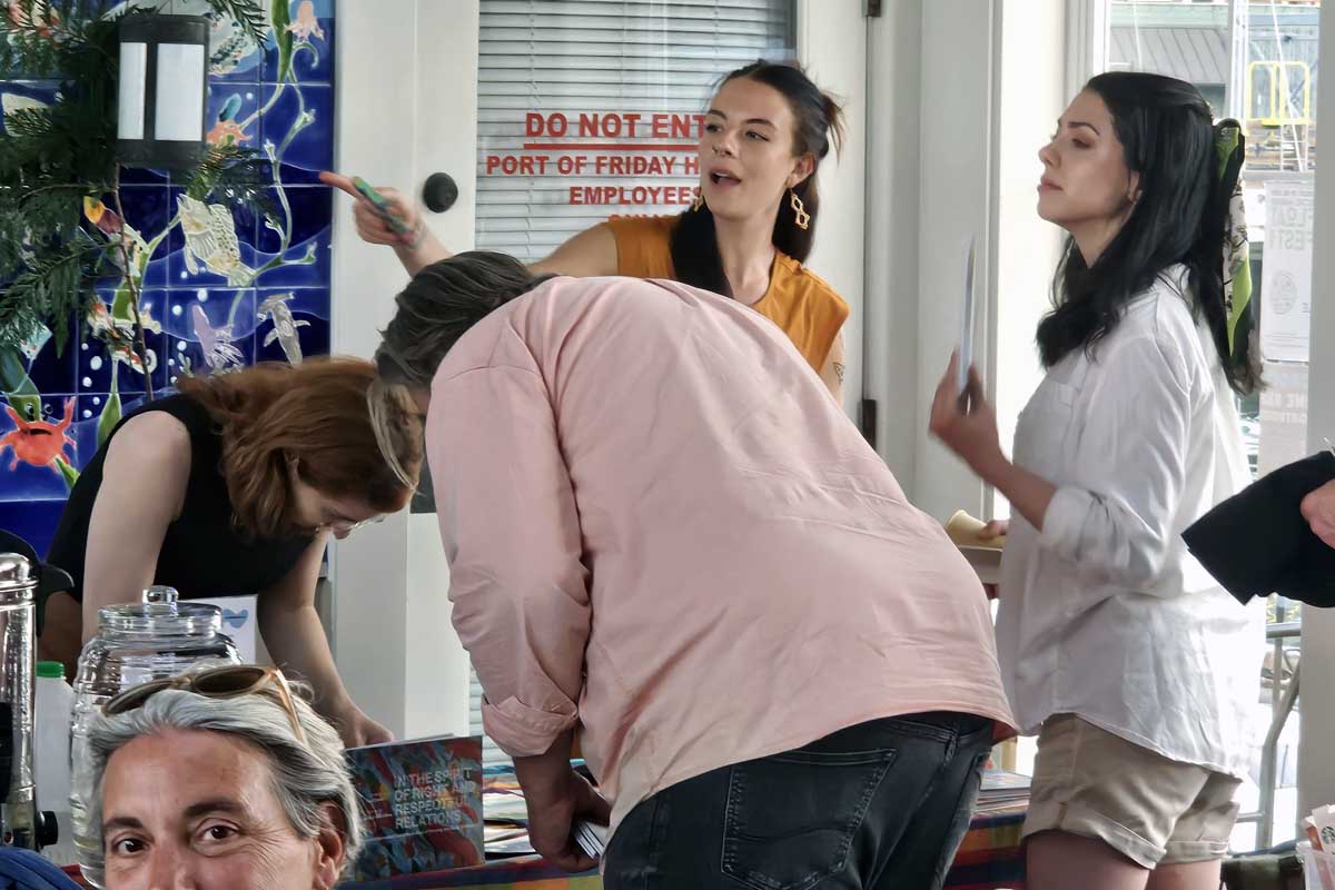 Co-hosted by the mission-driven publisher Braided River, the event brought together a panel of contributors whose lived experiences and creative work embody the spirit of the book. Held under the Friday Harbor Landing Clock Tower, the gathering drew a mix of island residents and curious visitors alike.