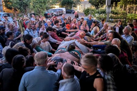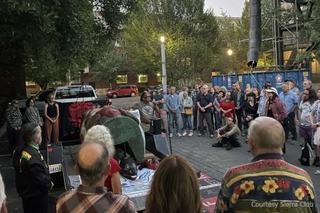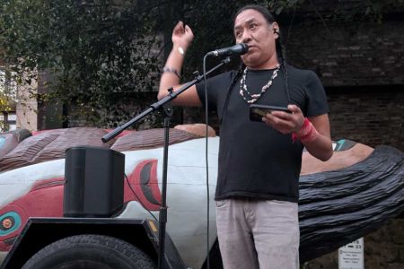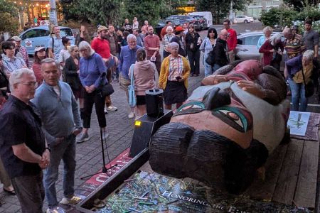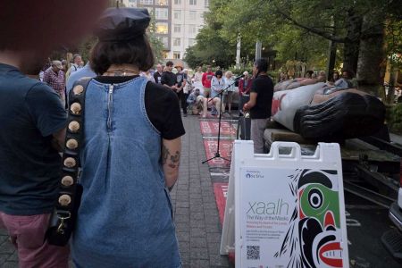 The Xaalh tour held its third rally at the EcoTrust Building in Portland where locals around the area attended to witness and bless the totem.