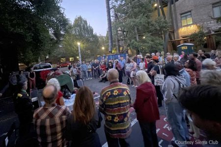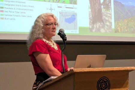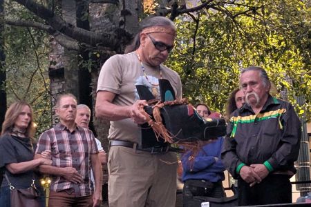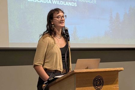 Speakers included Kai McMurtry, Rabbi Benjamin Barnett (Havurah Shalom), Madeline Cowen (Cascadia Wildlands), Tim Ingalsbee (FUSEE) and Mask recipient, Angela Sondenna (Natural Resources Director, The Confederated Tribes of Siletz Indians).