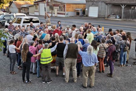 The Xaalh tour’s sixth stop was at the Rockford Grange in Hood River Oregon. There, a local audience assembled to partake in music, prayer, and presentations.