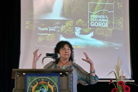 Music was provided by the Eagle Quest drummers and Paul Blackburn. Speakers included the mayor of Hood River Paul Blackburn, Friends of the Columbia Gorge, Kate Murphy (Columbia Riverkeeper). Blessing of the Totem Pole by Rev. Barbara Prose and others.