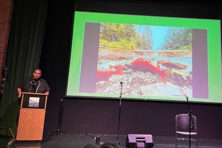 Alyssa Macy (Warm Spring Tribe) hosted the evening and was the recipient of the Cedar Mask given by Jewell James and Dr. Kurt Russo. Speakers included Bishop Eusebio Elizondo (Auxiliary Bishop of Archdiocese of Seattle), Kayeloni Scott (Nez Perce Tribe), Robin Lovelace (Tlingit), and Rueben George (Tsleil-Waututh). Musical performances were given by Dana Lyons, Chenoa Egawa (Lummi) and Richard Newman.