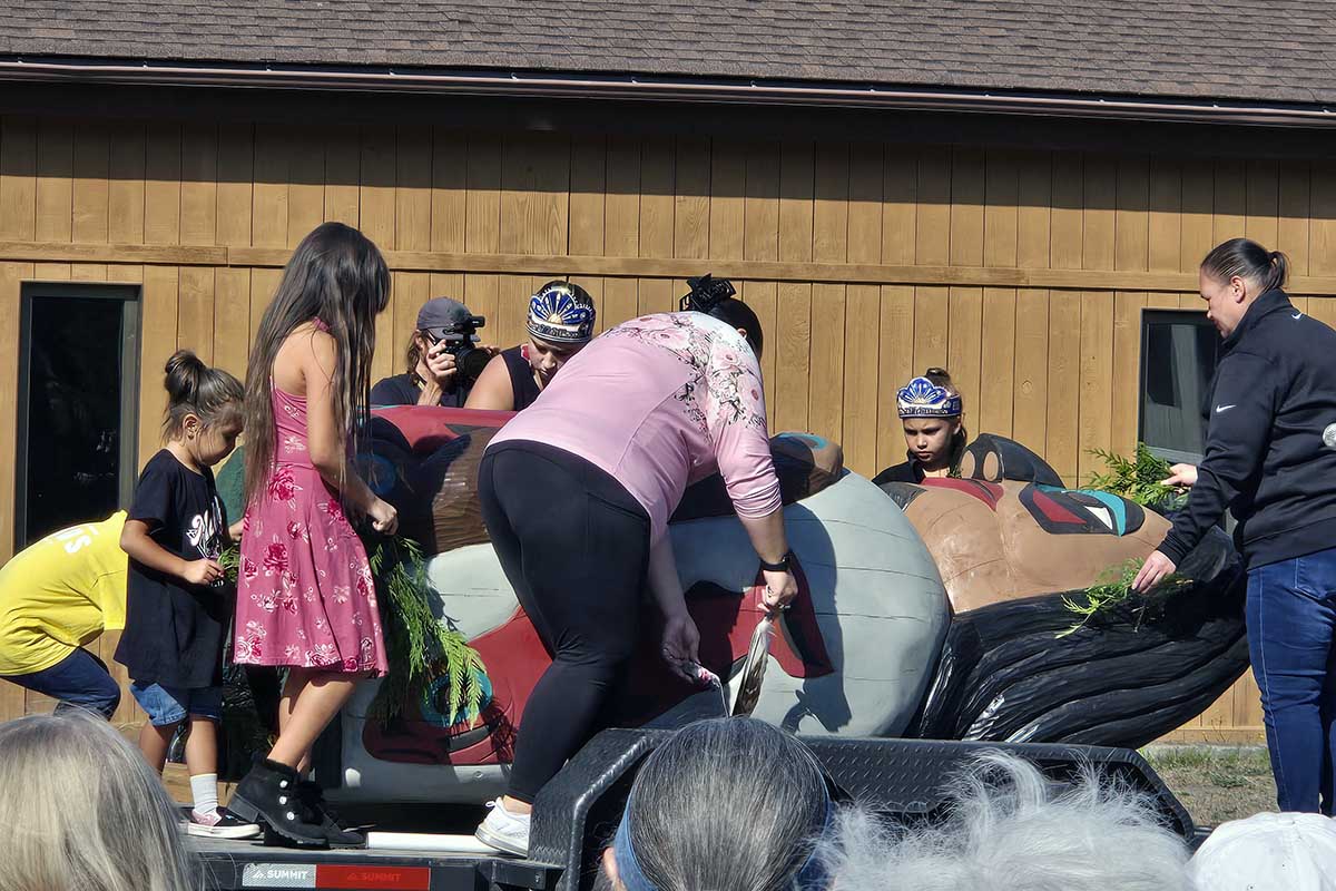 The Xaalh tour concluded its two week journey at the Tribal Center in Lower Elwha WA. There, the “Bear to Human, Human to Bear” Totem was received by the community. Future visitors will be able to see the Totem at the Tribal Center.