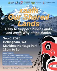 This moving rally, led by Se’Si’Le and Sierra Club was the first stop of a tour across the Pacific Northwest, uniting traditional masks, storytelling, and community voices to remind us that protecting public lands is a sacred responsibility — not just policy. The rally focused on our efforts to stop the repeal of the Roadless Rule* by the USDA and US Forest Service.